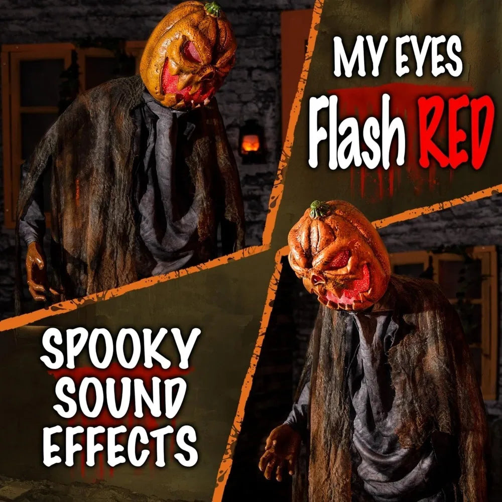 72 Inch Sound and Sensor Activated Pumpkin Head Prop Decoration!