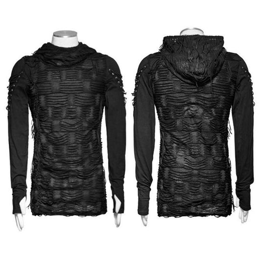Gothic Hooded T-shirt Black Punk O-neck Long Sleeve Top
