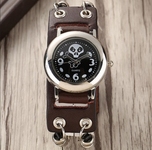Brown Leather Skull Steam Punk Wristwatch