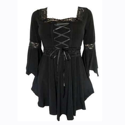 Plus Size Gothic Lace Up Bell Sleeve Shirt