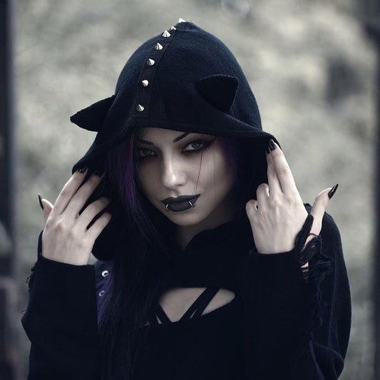 Gothic Steampunk Cat Ears Rivet Hooded Dress