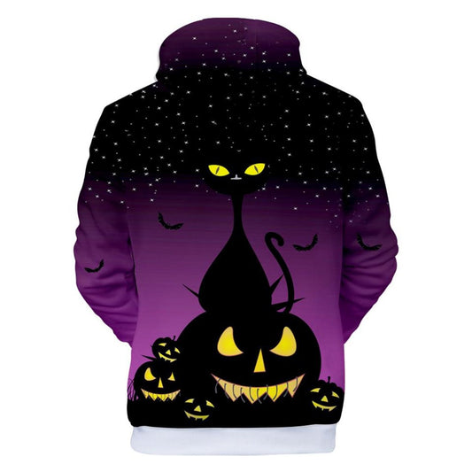 Creepy Cat And Pumpkin 3D Hooded Sweatshirt