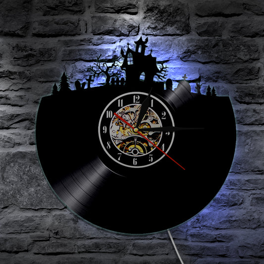 7 Color 3D LED Haunted House Vinyl Wall Clock