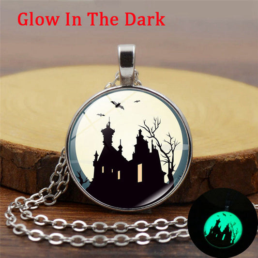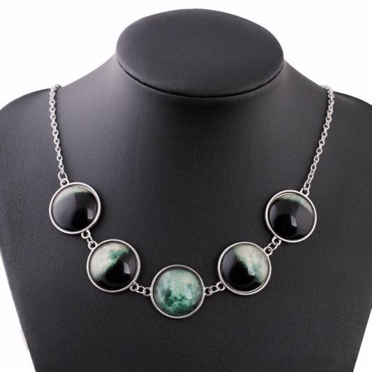 Luminous Dome Cabochon Glow In The Dark Lunar Moon Phase Necklace