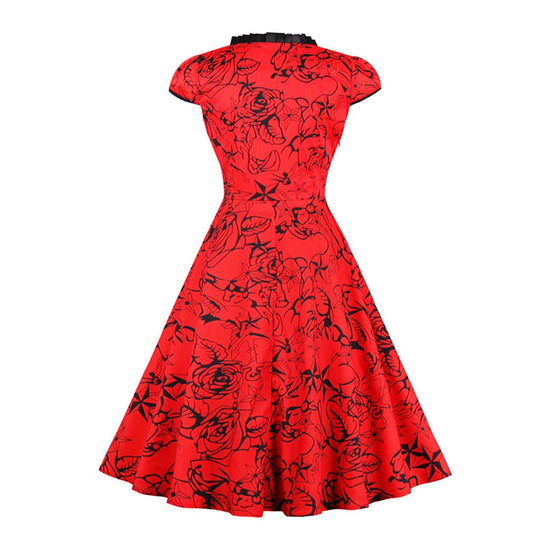 Rosetic Gothic Red & Black Floral Lace Up Dress