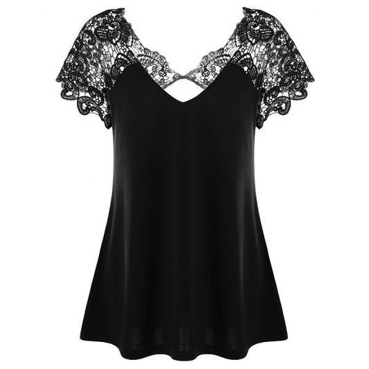 Plus Size Cutwork Lace Trim Gothic T-Shirt