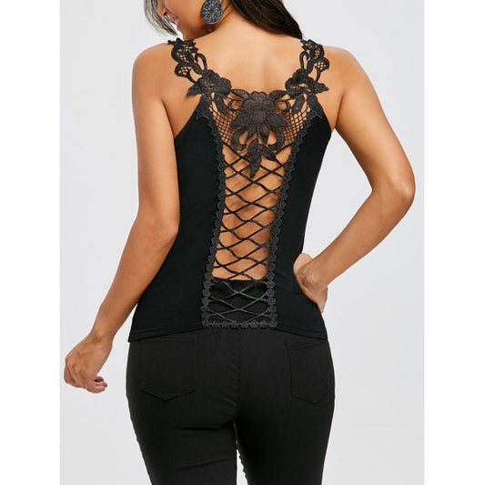 Lace Appliqued Lattice Back Gothic Floral Tank Top