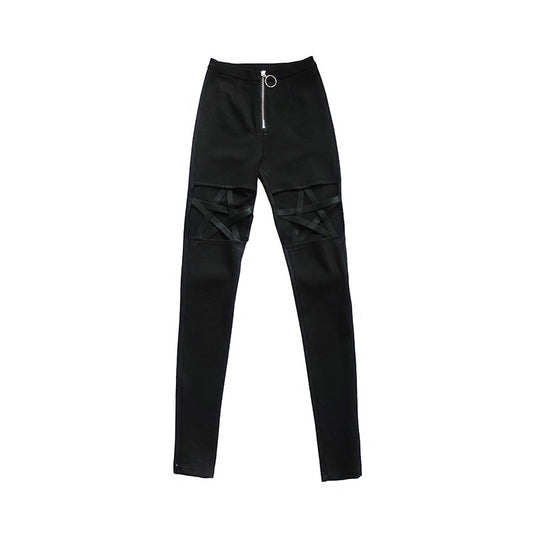 Punk Gothic Women Hollow Out Five-Pointed Star Leggings