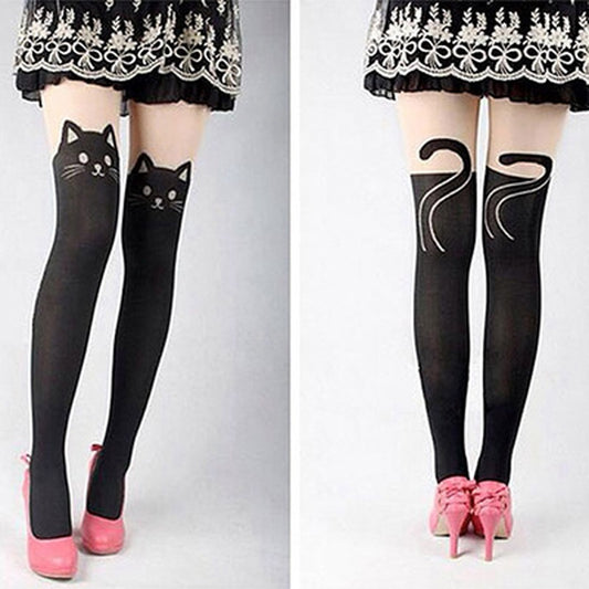 Stretch Tights Cat Print Stockings