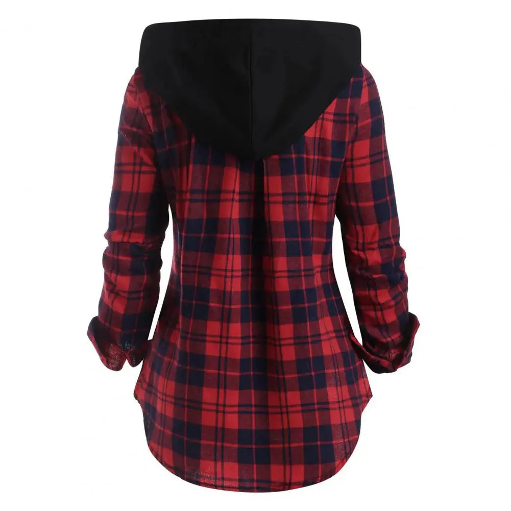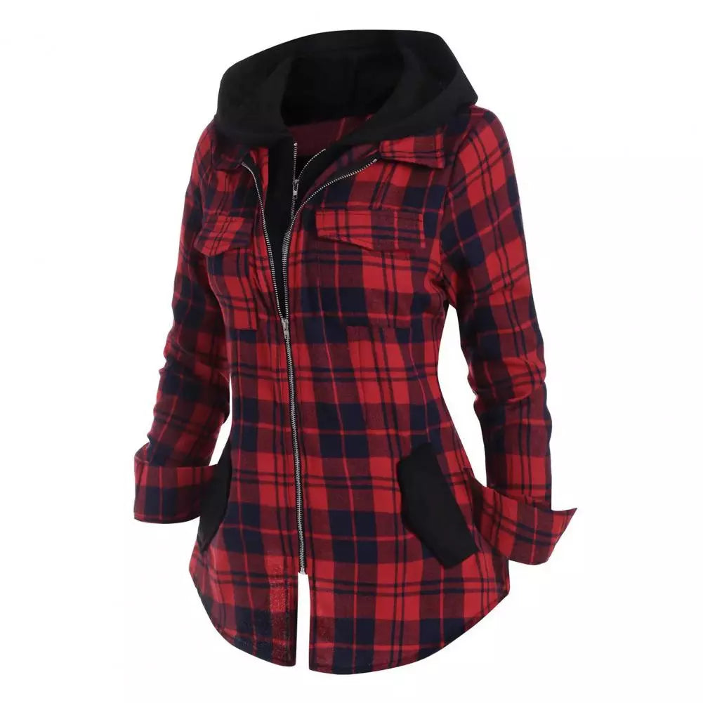 Plaid Zip Up Hooded Long Sleeve Shirt!