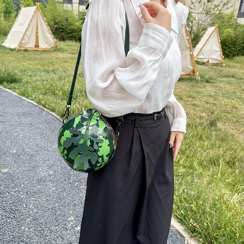 Round Watermelon/Apple Fruit Purse Shoulder Handbag