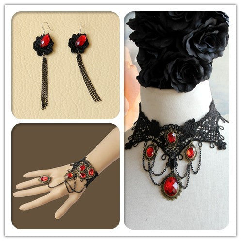 Gothic Jewelry Lace Earrings / Bracelet / Necklace & Pendant